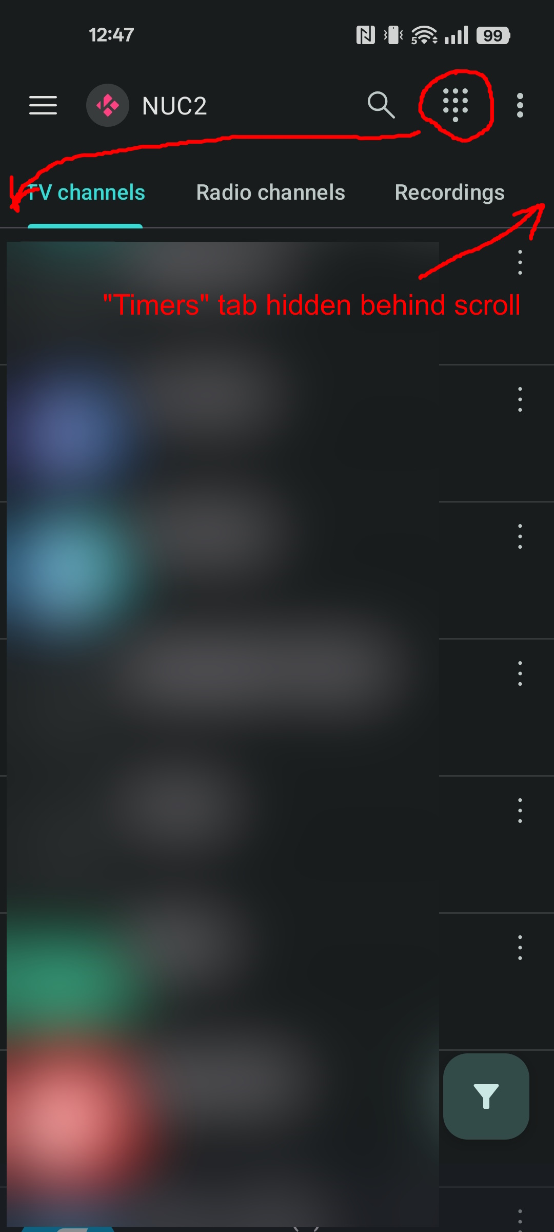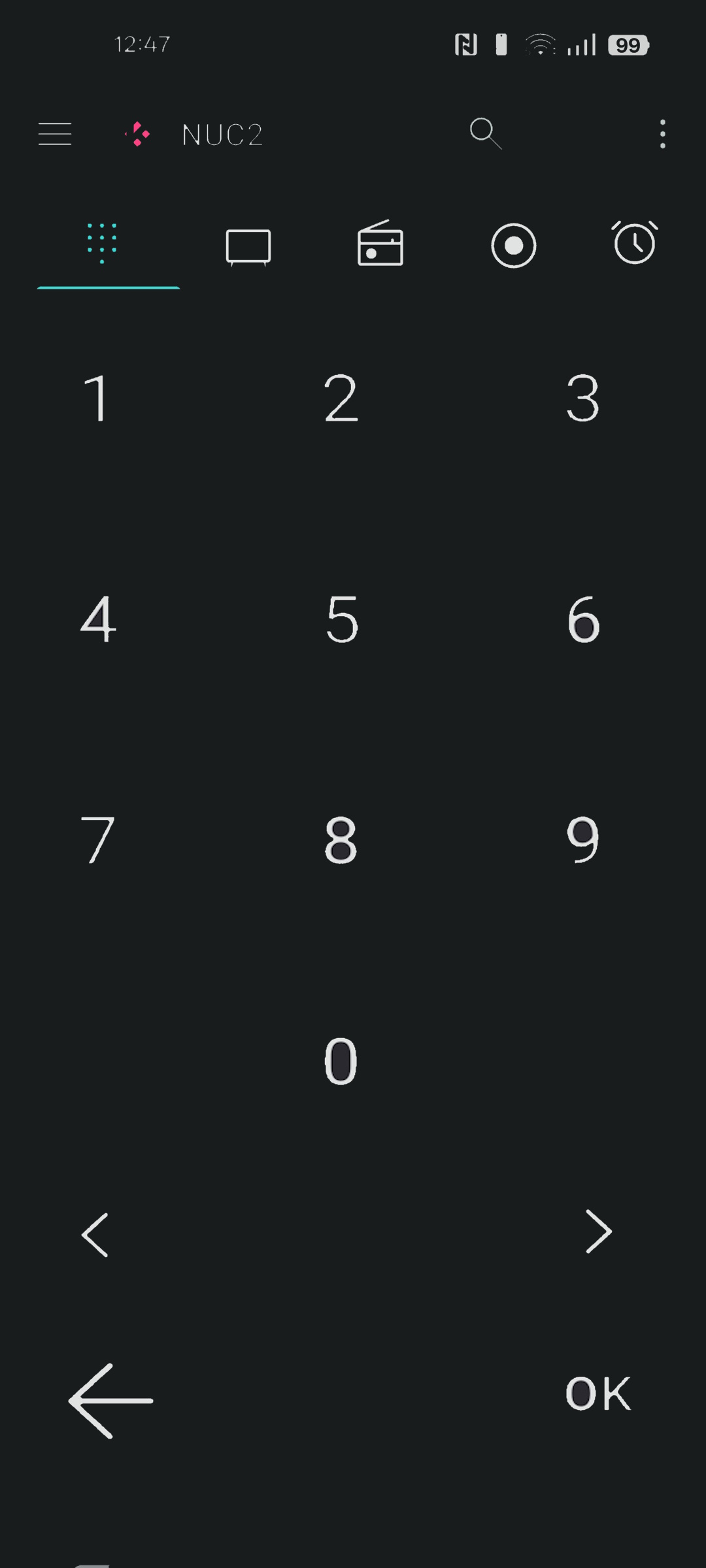 My suggestion is as follows: instead of having this popup window (which in my opinion is a little bit too small), adding a 5th “Remote” tab with these buttons (in order to avoid having to scroll to locate the tab I would also remove the “channels” text from the “TV” and “Radio” tabs) and put it in the 1st position. This way the user would not have to click a button if they are more comfortable with the numeric control and there would be more space for bigger buttons.