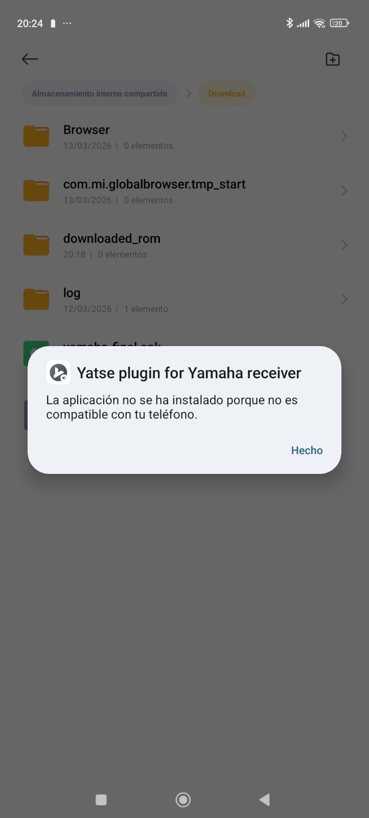 My father (who also uses Yatse’s pro version) got a new phone that comes with Android 15. Yatse itself works fine, but when we try to install the Yamaha plugin, even from the APK found here Yamaha receiver plugin , we get the following error message: “The application couldn’t be installed because it is not compliant with your phone” (the option to install APKs from sources other than google play was activated for a file explorer, so the issue does not come from that side).